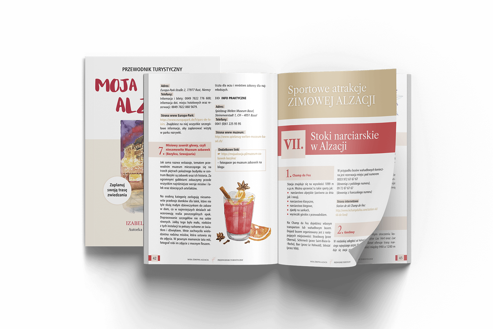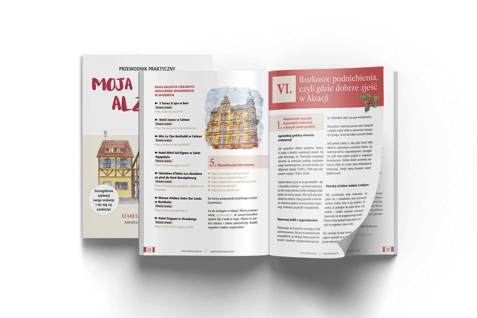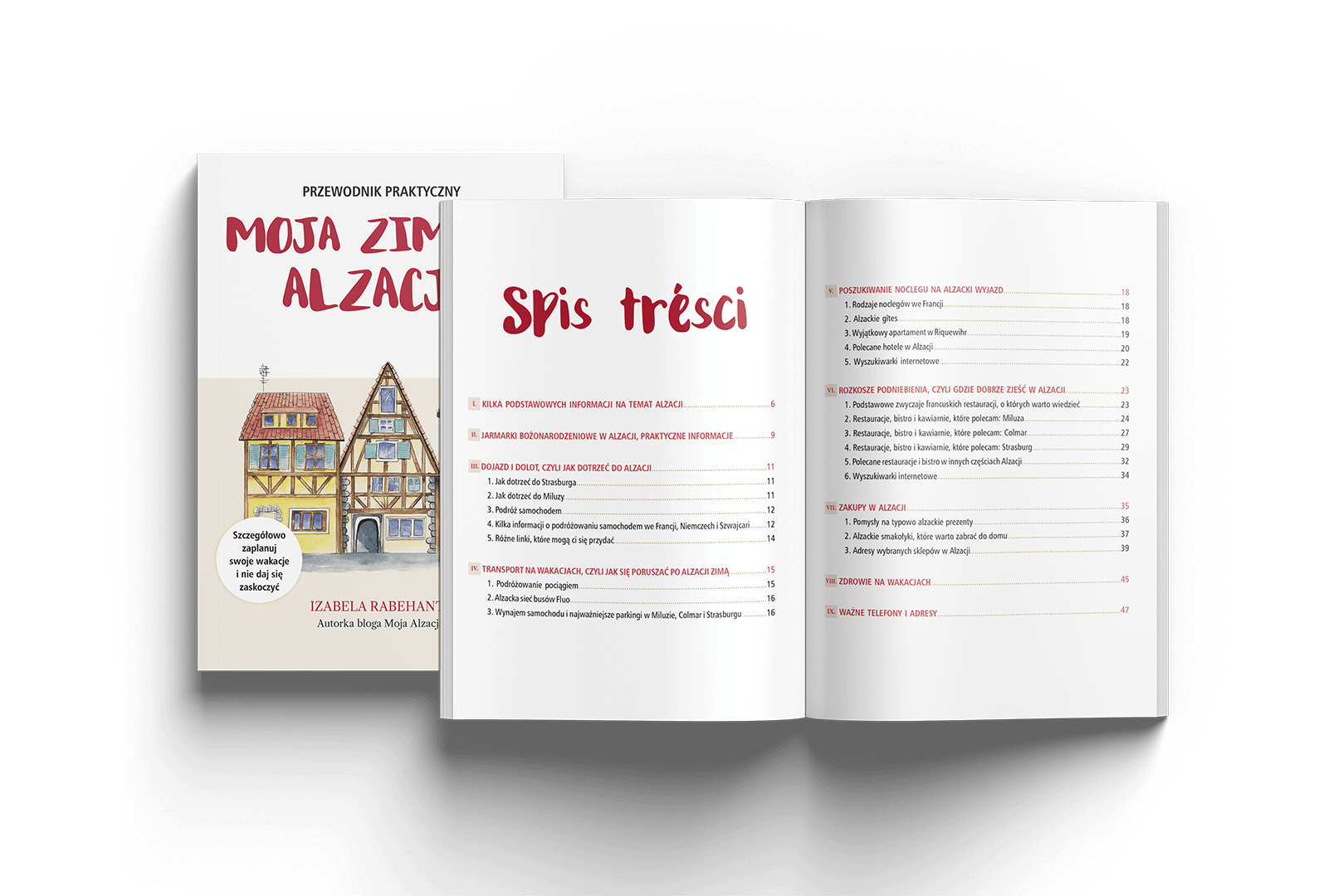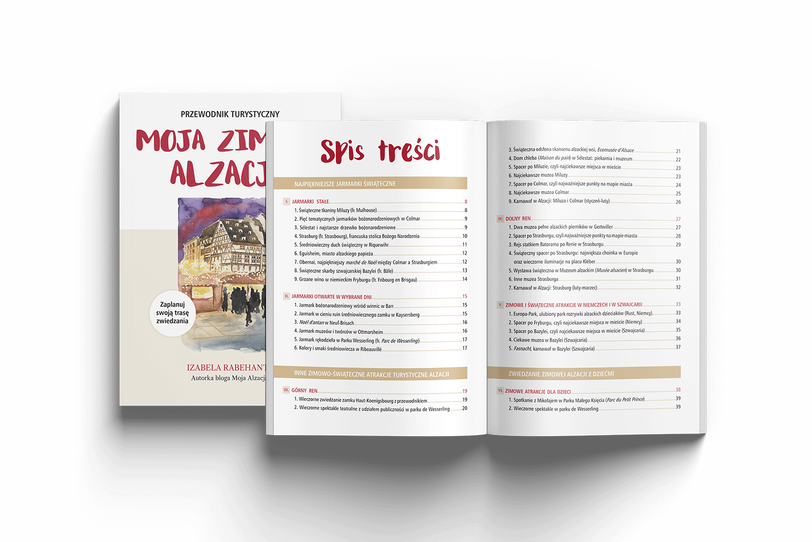 Przeczytasz o najpiękniejszych marchés de Noël, zimowych atrakcjach, kulturze i historii regionu. Dostaniesz między innymi kilkadziesiąt sprawdzonych adresów na jedzenie i nocleg, ponad dwieście aktywnych linków, aby pogłębić wiedzę oraz słowniczek francusko-polski najpotrzebniejszych słów i wyrażeń.